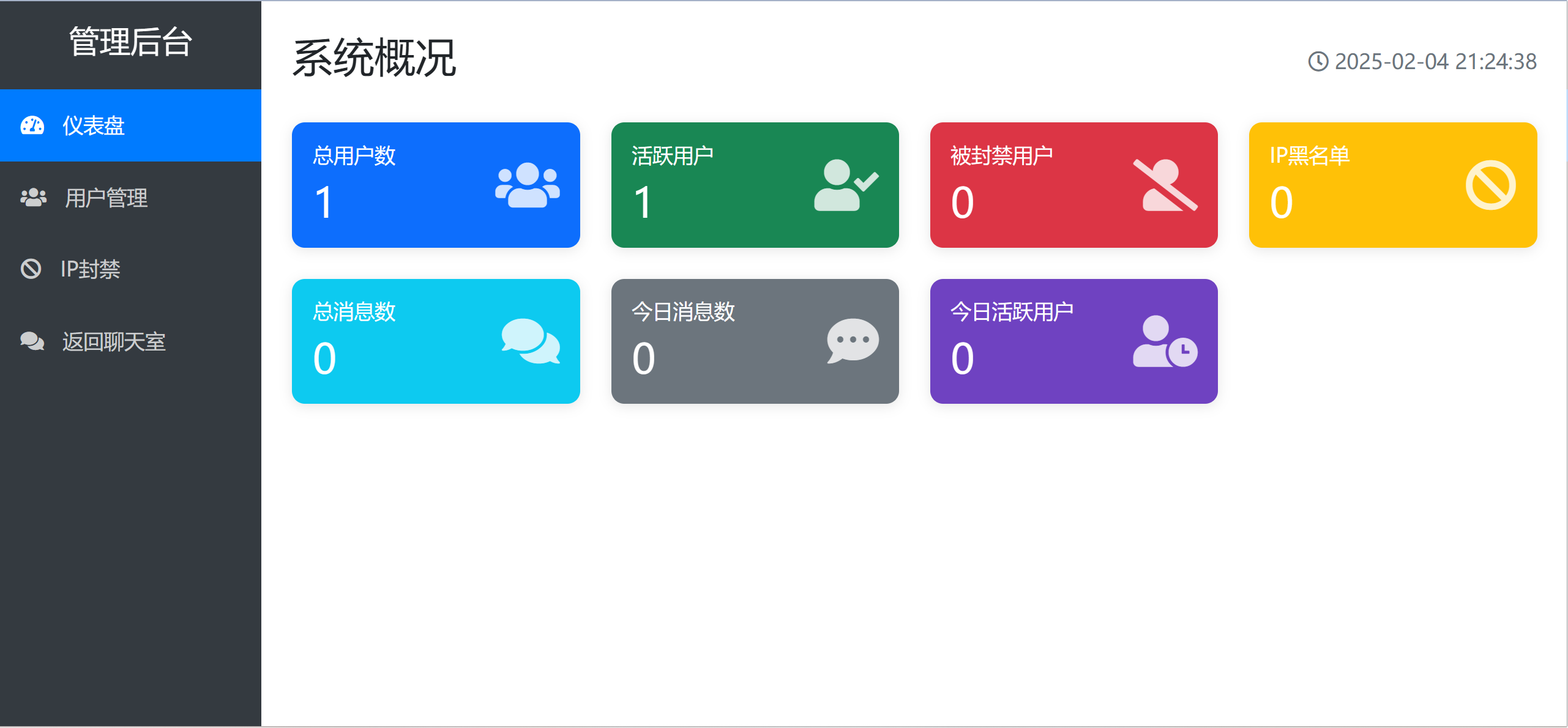 支持多人在线同时聊天注册记录 ip,封禁 ip 功能使用方法:新建数据库,数据库名必须为 chat-room懒得开电脑具体我也忘了,安装会提醒的访问:域名 /install.php输入数据...