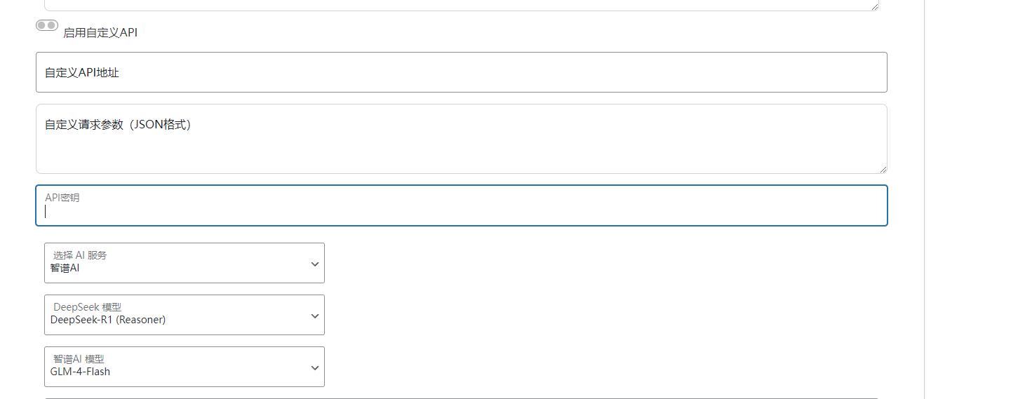 后台直接输入 deepseek 的 key 即可使用(后台有获取 key 的官方链接)