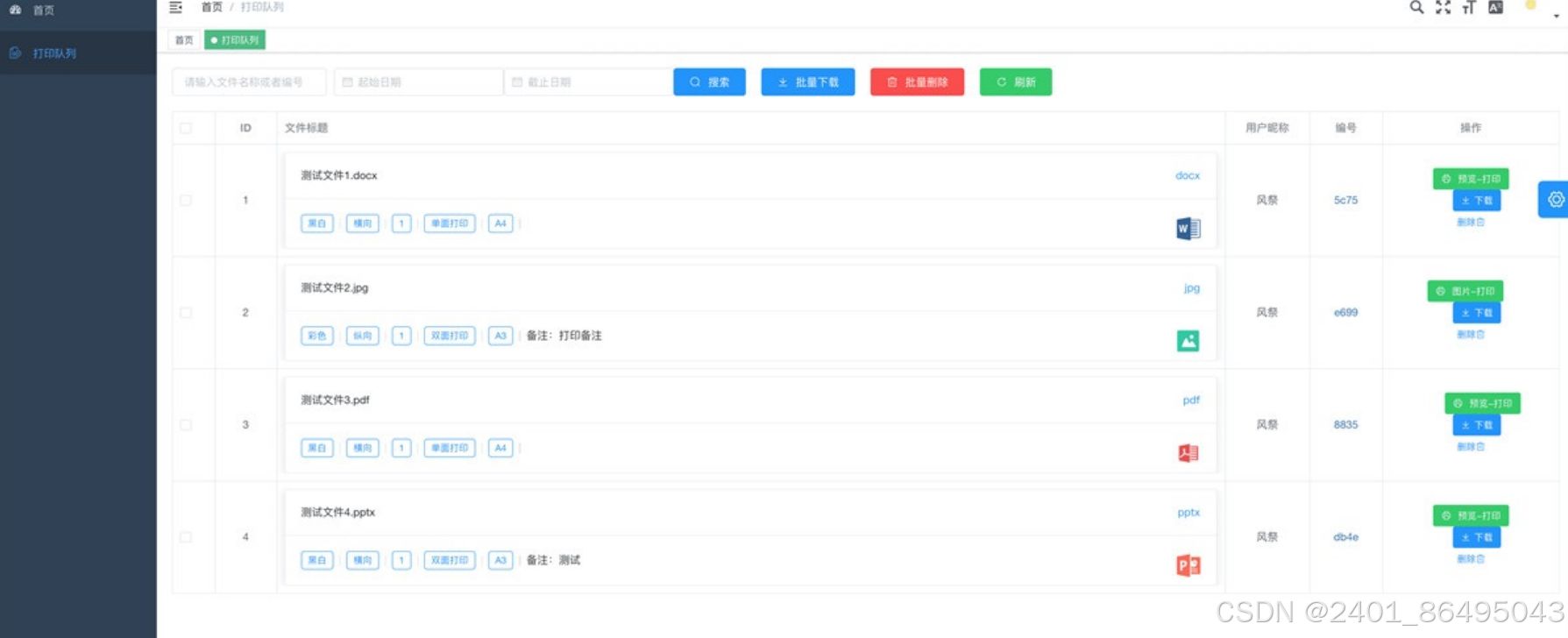 Go+Vue打印店远程打印小程序源码,带微信小程序前端代码和后台程序源码,用户可以通过小程序上传文件→店主在线预览(下载)&打印。