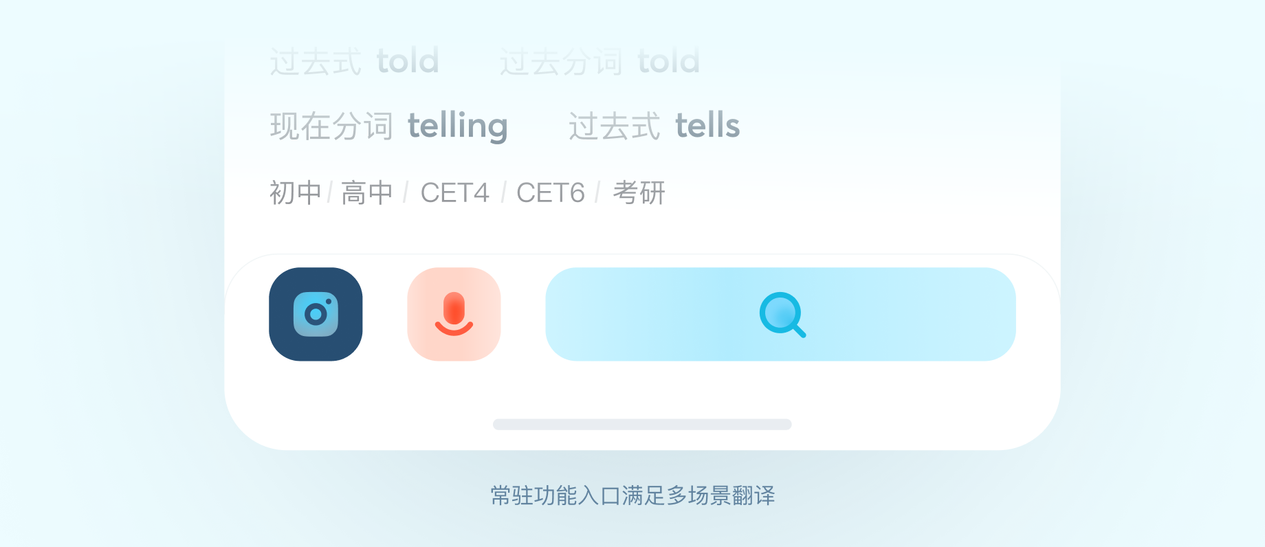 在学生作业练习、出门旅行等实际场景中,常有文字、对话、拍照翻译需求交叉出现的情况。此前在翻译一段文字后,如需要换用其他模式,用户需要退回首页寻找入口,循环使用效率较低。新版本交互中,对多场景翻译做出优化 —— 输入按钮始终在翻译结果页底部待命,无论何时,快速唤起你要的模式,就像在聊天中一样简单流畅~